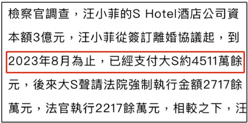 但这违反两人离婚协议的补充协议,可能也是因此让汪小菲背上赡养费的欠款,而“大S花前任钱养现任”一事也让她的口碑崩塌。随后两人互相更是为了财产和孩子问题争得不可开交,甚至还传出大S想要汪小菲赔偿4.8亿的说法。